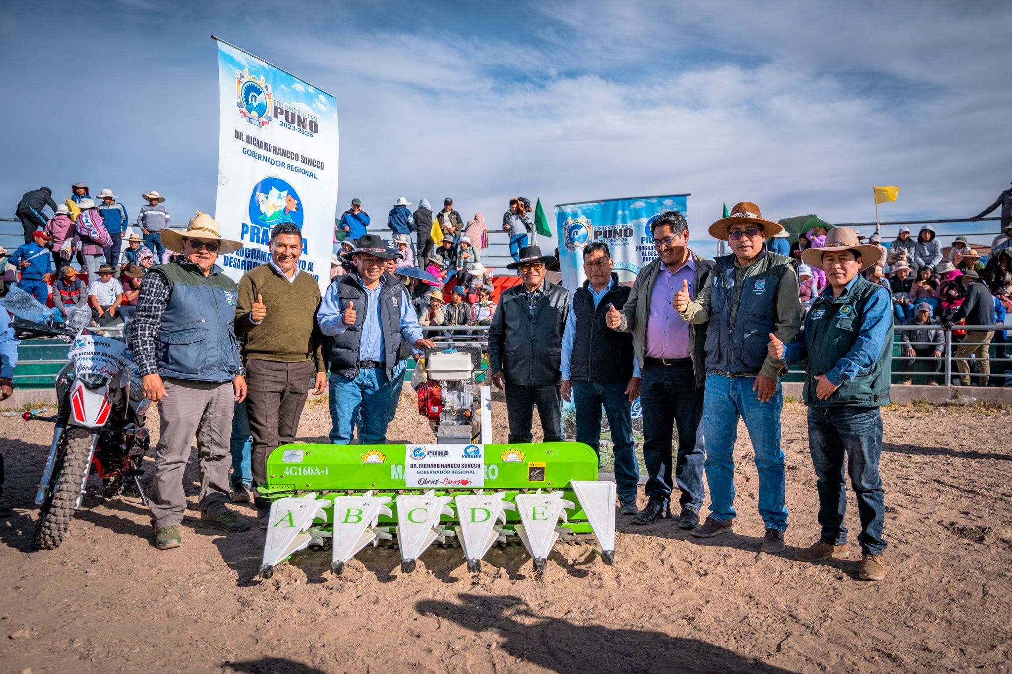 Autoridades del Gobierno Regional de Puno, incluyendo al Gerente Regional de Desarrollo Agrario, Richard Gómez Palacios, junto con el alcalde provincial y otras autoridades locales, fueron los encargados de premiar a los ganadores.
