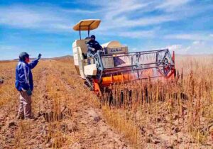 Personal de la Agencia Agraria San Román de la Gerencia Regional de Desarrollo Agrario, inició con los trabajos de cosecha de quinua en el Centro de Producción Cieneguillas, se logró cosechar más del 60% del área instalada.