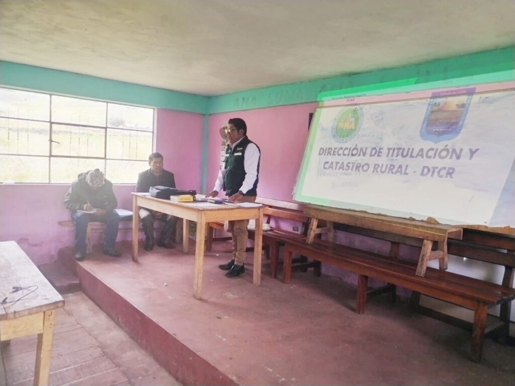 La Dirección de Titulación y Catastro Rural (DTCR) cumplió las charlas informativas en el sector San Pedro Buena Vista, Distrito José Domingo Choquehuanca- provincia de Azángaro, provincia de Puno, trabajo que se realiza por parte de los especialistas de la Oficina de TUPA de la DTCR.