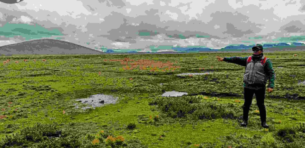 Desde el proyecto Vicuñas, realizo labores de monitoreo y seguimiento en los módulos implementados para nuevas zonas irrigables de praderas y la mejora de pastizales destinados al hábitat de las vicuñas en esta región.