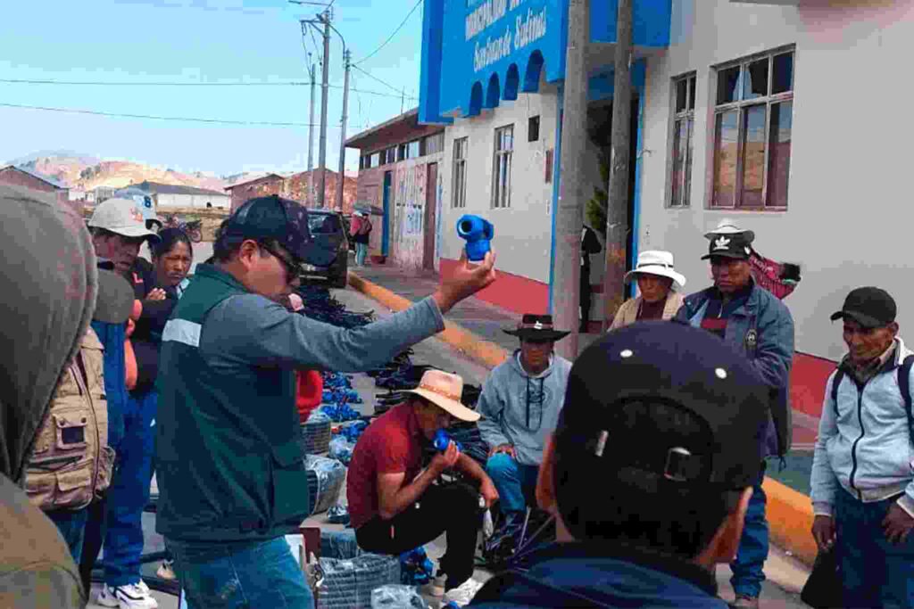 Con la finalidad de continuar promoviendo la seguridad alimentaria y el desarrollo sostenible, la Gerencia Regional de Desarrollo Agrario a través del Proyecto Seguridad Alimentaria realizó la entrega de materias para la instalación de riego tecnificado por goteo en las infraestructuras productivas de hortalizas de los beneficiarios del Distrito de San Juan de Salinas, Provincia de Azángaro.