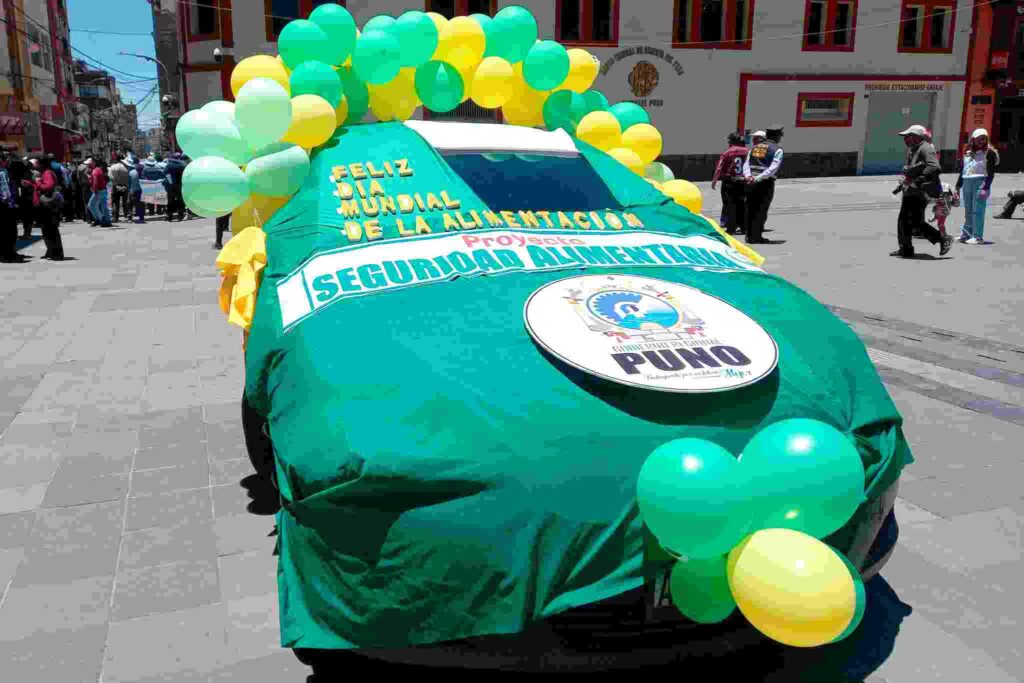 Por el día mundial de la alimentación, Proyecto Seguridad Alimentaria participa activamente en el “I Gran pasacalle por el día mundial de la alimentación”, recorriendo las principales arterias de la Ciudad de Puno con la finalidad de sensibilizar a la población en general sobre problemas de alimentación que aquejan a la población en general y el riesgo que representan para las generaciones venideras.