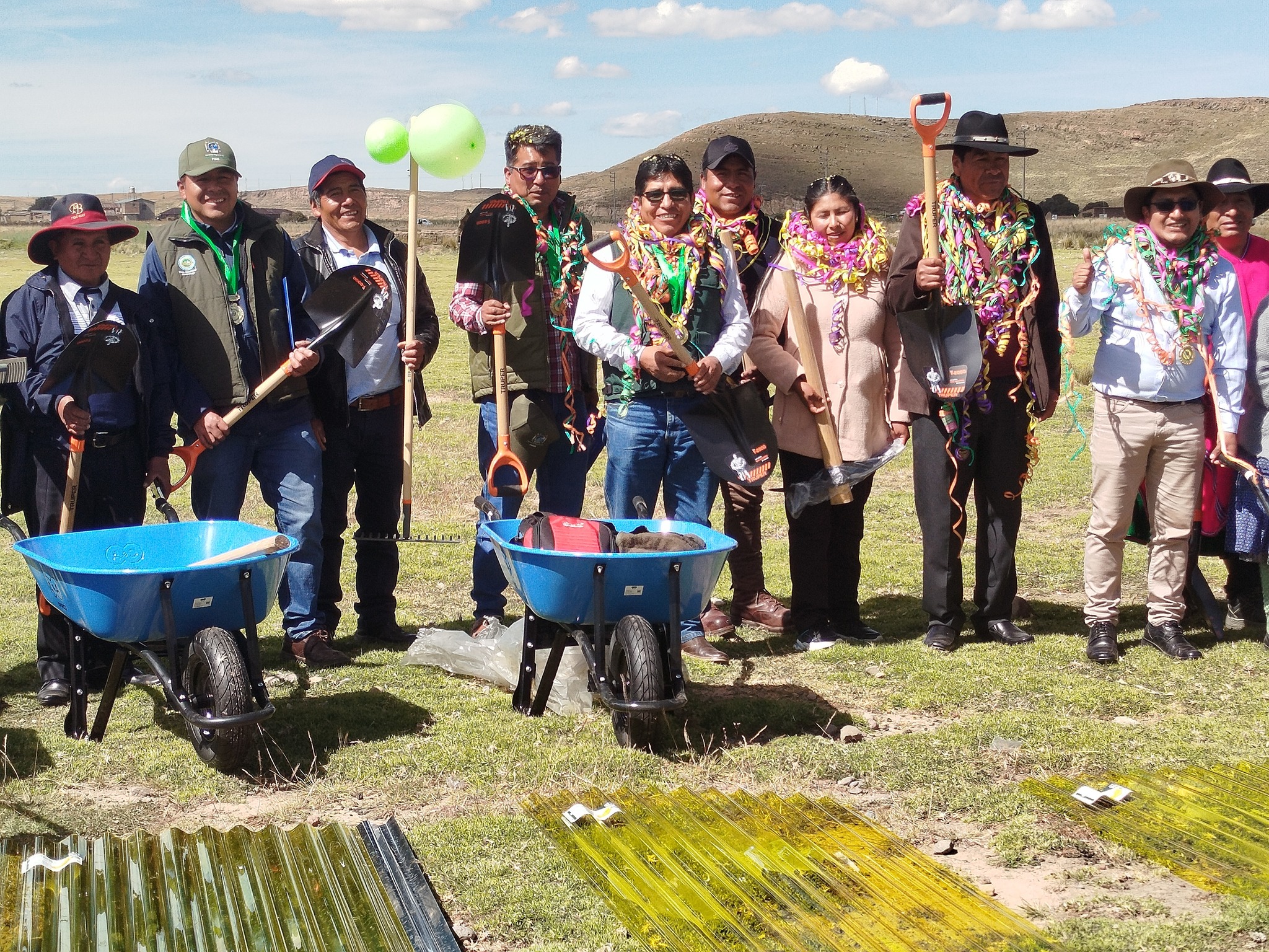 La Gerencia Regional de Desarrollo Agrario del Gobierno Regional de Puno realizó la entrega de materiales del Proyecto Seguridad Alimentaria a diversas asociaciones del Distrito de Cabanilla, Provincia de Lampa, materiales que constan de; calaminas galvanizadas, policarbonato, rastrillo, pala, pico, comedero tipo tolva, gazaperas, carretillas y plástico azul.