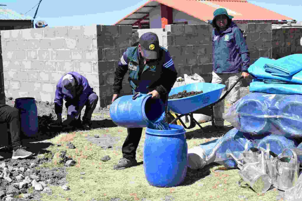 Es preciso mencionar que, los profesionales de campo liderados por la Ing. Pamela Condori Gonzales realizaron la elaboración de biol, el cual se origina a partir de la descomposición de materiales orgánicos que poseen en el campo como; estiércol de animales, ceniza, plantas secas o restos de verduras.