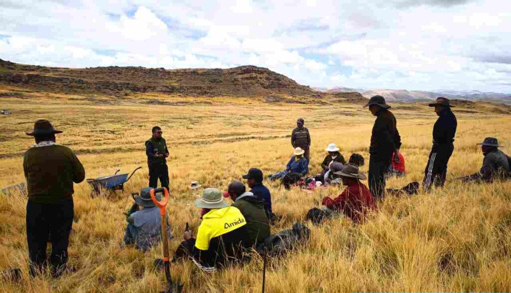 El equipo técnico del Proyecto Vicuñas avanza con los trabajos de campo para la instalación de microreservorios en los nuevos comités de manejo sostenible de vicuñas. En esta oportunidad, las labores se desarrollan en el C.C. Pedro Vilcapaza de Checayany, ubicado en el distrito de Muñani. Este microreservorio contará con una capacidad de 150 metros cúbicos de agua, fortaleciendo la gestión de recursos hídricos en la zona.